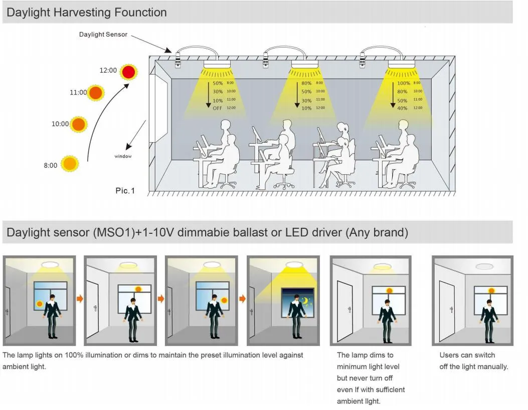 Intelligent lighting controls offer commercial and industrial businesses opportunities for energy savings and improved control. Functions include APP remote control, 0-100% dimming, timing dimmable schedules, and grouping/partition control.